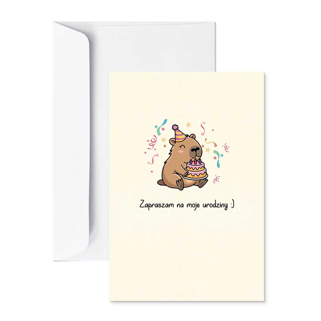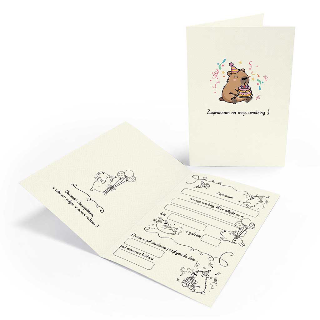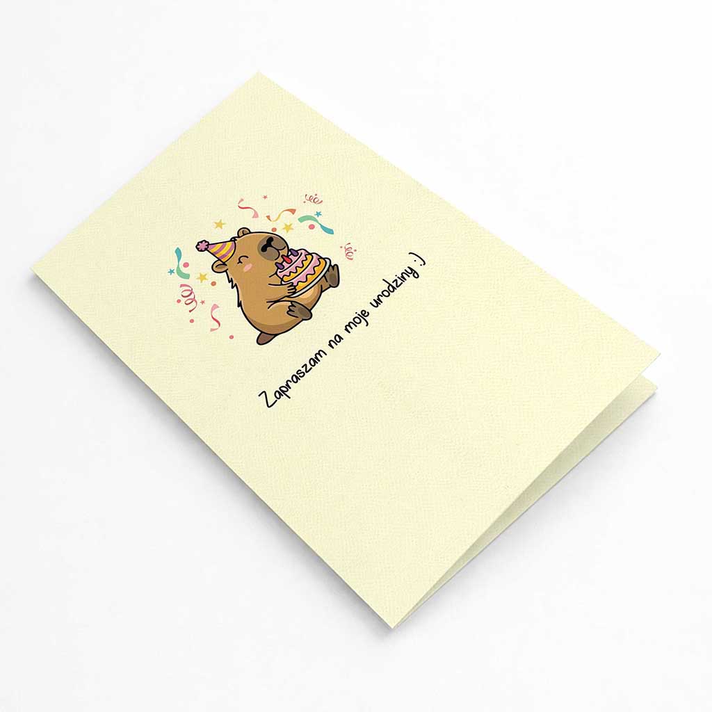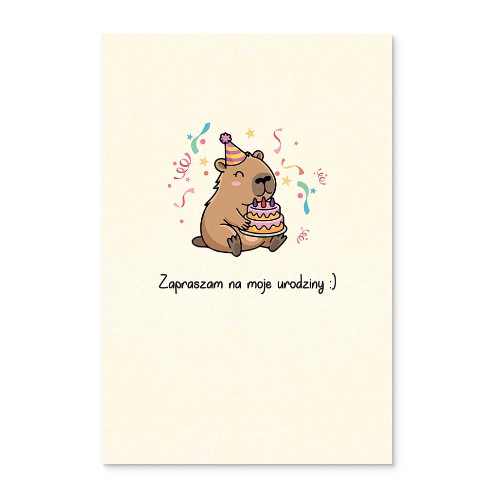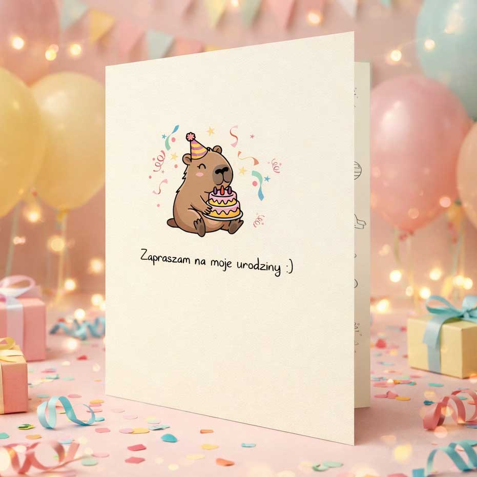 To zaproszenie, które pasuje na każde urodziny - niezależnie od wieku solenizanta. Bo dobry design nie ma metryki, a kapibara jest po prostu ponadczasowa.